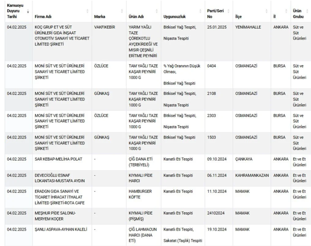 Tarım ve Orman Bakanlığı, taklit-tağşiş yapılan ve sağlığı tehlikeye düşürebilecek gıdalar listesini güncelleyerek ilgili listeyi bakanlığın internet sitesinde paylaştı. Paylaşılan liste yine pes dedirtti. 34 markanın taklit ve tağşiş yaptığı ortaya çıktı. Denetimlerde fıstıklı baklavada ayçiçeği tespit edildiği, dana hamburger köftesinde ise sakatat (kalp) karıştırıldığı ortaya çıktıTam yağlı diye satılan beyaz ve taze kaşar peynirinde yağ oranının düşük tutulduğu görülürken kekikte yabancı madde çıktı.Çiğ dana etinde ise kanatlı et tespit edildi. İşlem görmüş sucuklarda ise baş eti eklendiği ve taklit yapıldığı ortaya çıktı.
