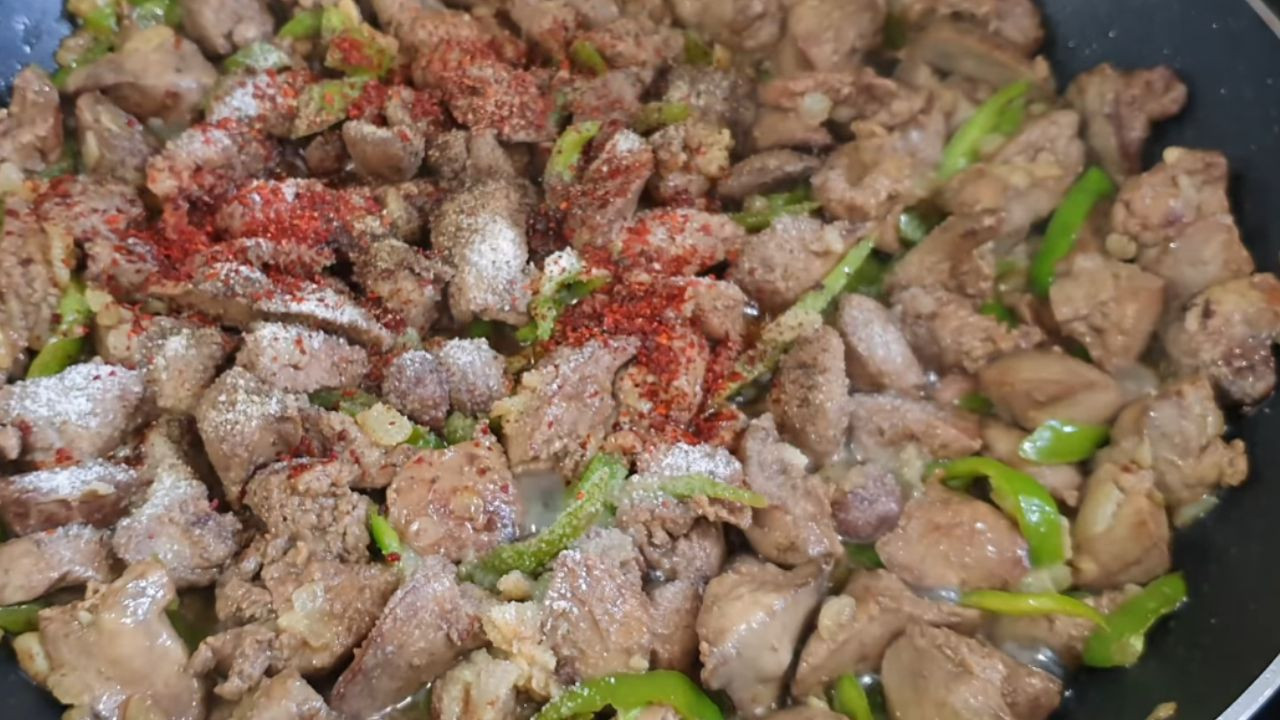 2. adım: Daha sonra içerisine ciğerleri ilave edip kavurma işlemine geçin.