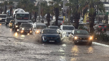 Muğla'nın Bodrum ilçesinde aniden bastıran sağanak yağış, sokak ve caddeleri göle çevirdi. Kısa sürede şiddetini artıran yağmur sürücüler ve vatandaşlara zor anlar yaşattı.
