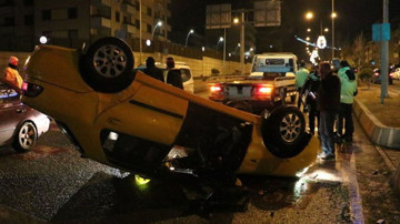 Çarpışmanın etkisiyle bir taksi ters döndü, diğer aracın ise motor bölümünde hasar meydana geldi.