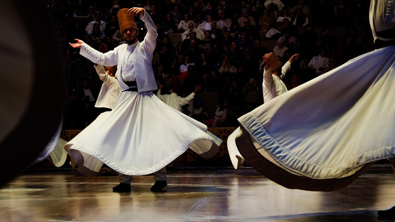 Tasavvuf müziği eşliğinde gerçekleşen sema gösterisinde semazenler, ilk önce kollarını çapraz bağlayarak, görünüşte 'Bir' rakamını temsil eder ve böylece Allah'ın birliğini tasdik eder. Ardından kollarını her iki tarafa açıp zikir yaparak, sağ eli dua eder gibi yukarıya, sol eli aşağıya açıktır. Bu, 'Haktan alır, halka saçarız, hiçbir şeyi kendimize mal etmeyiz, görünüşte var olan, vasıtalık eden bir suretten başka bir şey değiliz' anlamına gelmektedir. Sağdan sola kalbin etrafında dönerek, bütün insanları, bütün yaratılmışları, bütün kalbiyle sevgi ve aşkla kucaklayışıdır. Yedi bölümden oluşan semanın her bölümünün ise ayrı bir manası bulunuyor
