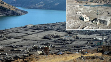 Baraj suları çekildi köy ortaya çıktı! Cami, kilise ve tarihi binalar...