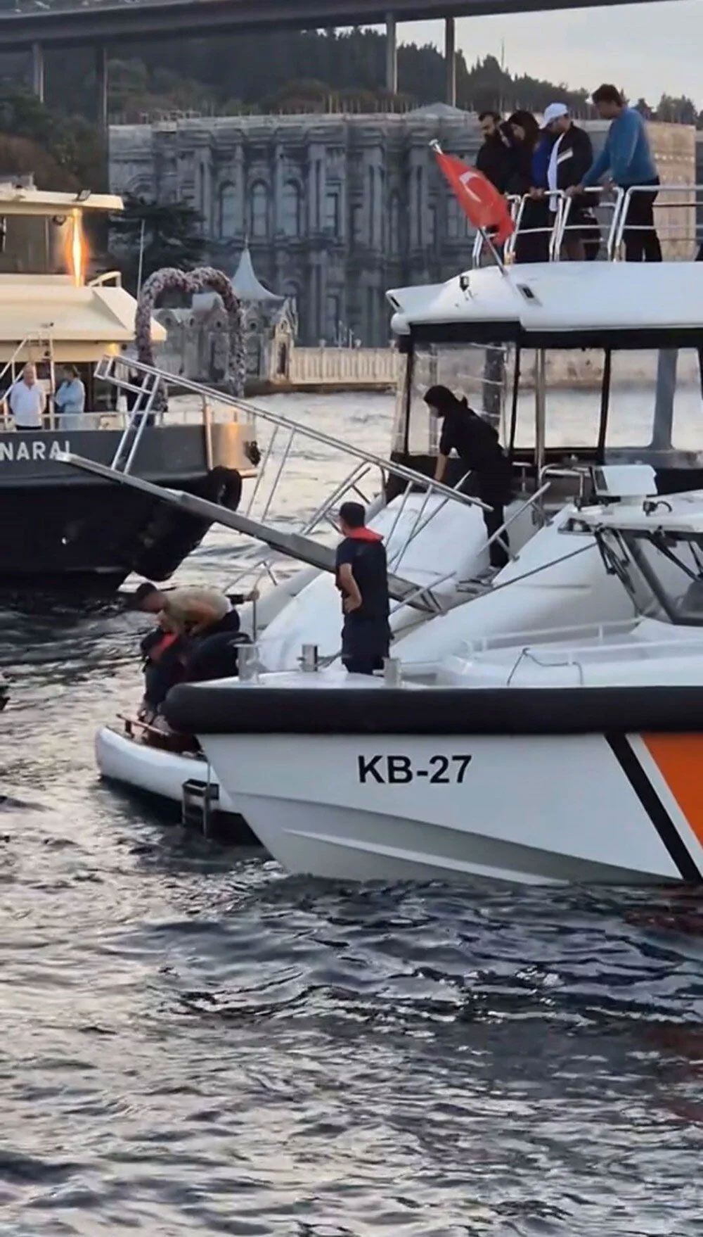 Teknelerde bulunanlar da can simidi atarak kadına yardım etmeye çalıştı.