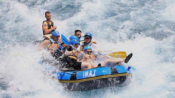 Rafting, adrenalin ve eğlencenin bir araya geldiği güzergahta doğa ile iç içe olan tatilciler, çevredeki tesislerde dinlenip, nehirde yüzerek serinleme imkanı buluyor.