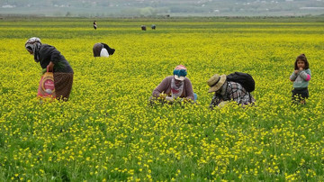 Hakkari'nin Yüksekova ilçesinde kadınlar, bahar mevsimi ile sarı çiçekler açan ovada, peynir ve çeşitli yemek yapımında kullanılan otları toplamaya başladı.