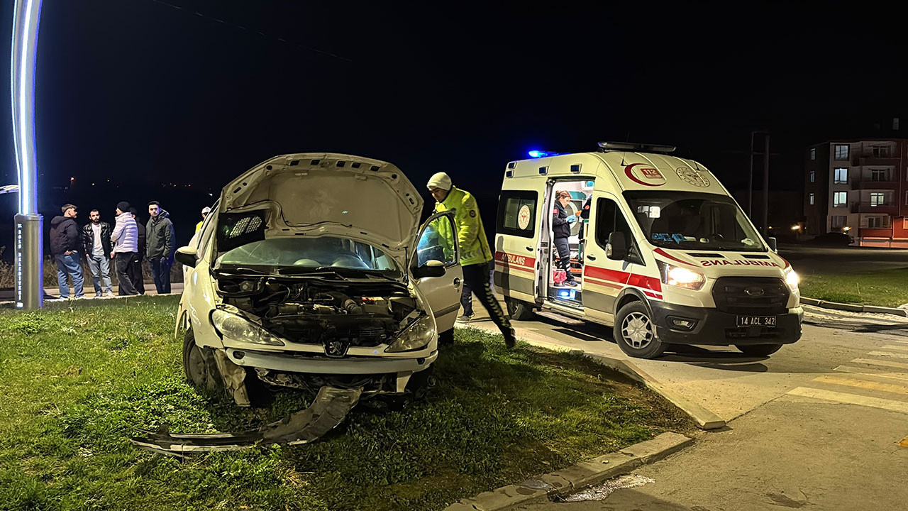 Bolu’da kontrolden çıkan otomobil refüje çarptı