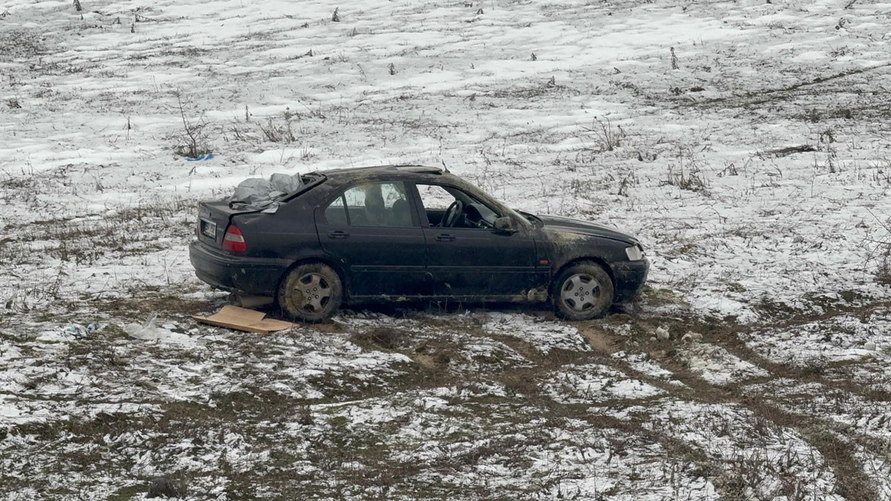 Boş araziye uçan otomobilin sürücüsü yaralandı