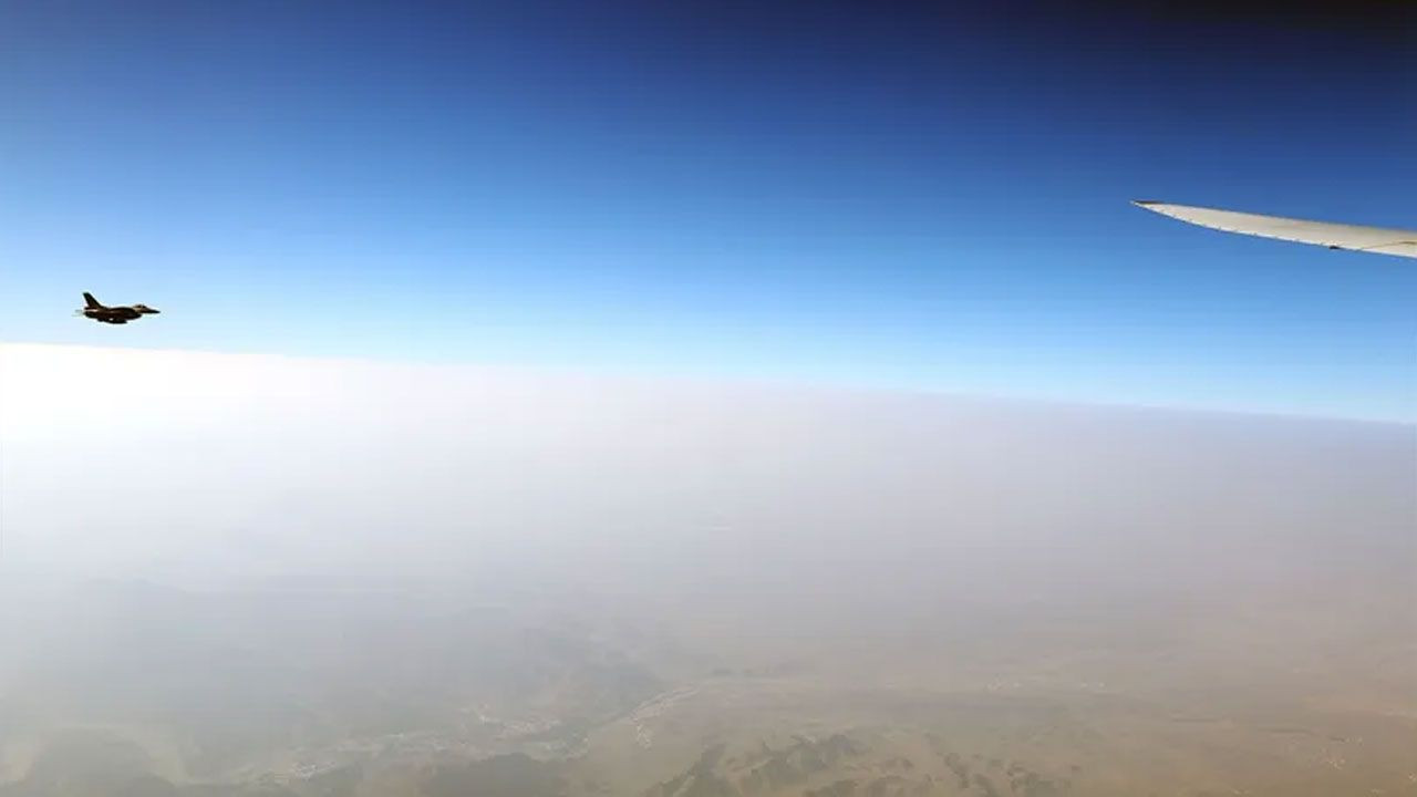 Cumhurbaşkanını taşıyan uçak Maskat Havalimanı’na yaklaşırken F-16 savaş uçakları eşlik etti.