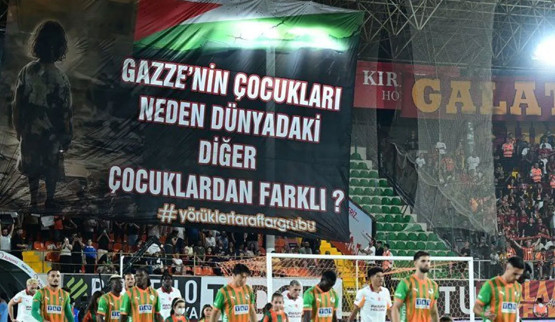 Alanyaspor tribünleri, "Gazze'nin çocukları, neden dünyadaki diğer çocuklardan farklı?" ifadelerinin yer aldığı bir pankart açtı.
