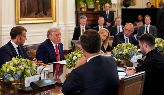 Beyaz Saray'da dikkat çeken bir an yaşandı. ABD Başkanı Donald Trump, Ukrayna Devlet Başkanı Volodimir Zelenski ve AB liderleriyle basın karşısına çıktığı sırada Fransa Cumhurbaşkanı Emmanuel Macron’a, “Kulağa çılgınca geliyor ama Putin benimle anlaşma yapacak” ifadelerini kullandı. Bu sırada ses mikrofondan bütün salona yayıldı.