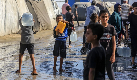 İsrail saldırıları sonucu altyapısı büyük zarar gören Gazze Şeridi'nin güneyindeki Han Yunus kentinde, Filistinliler temiz içme suyuna ulaşmakta güçlük çekiyor.