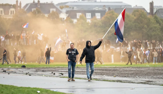 Hollanda bayrakları ve aşırı sağ gruplara ait bayraklar taşıyan göstericiler, polise taş ve şişe fırlattı. Polis, göstericileri dağıtmak için tazyikli su ve göz yaşartıcı gaz kullandı.