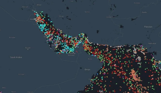 Kararın ardından yayınlanan Hürmüz Boğazı'nın gemi trafiği haritasında oluşan yoğunluk gözler önüne serildi.