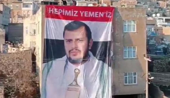 Mardin'de, Kızıldeniz'de İsrail'e giden gemileri hedef alan Husi lideri Abdülmelik El-Husi'nin posteri asıldı.