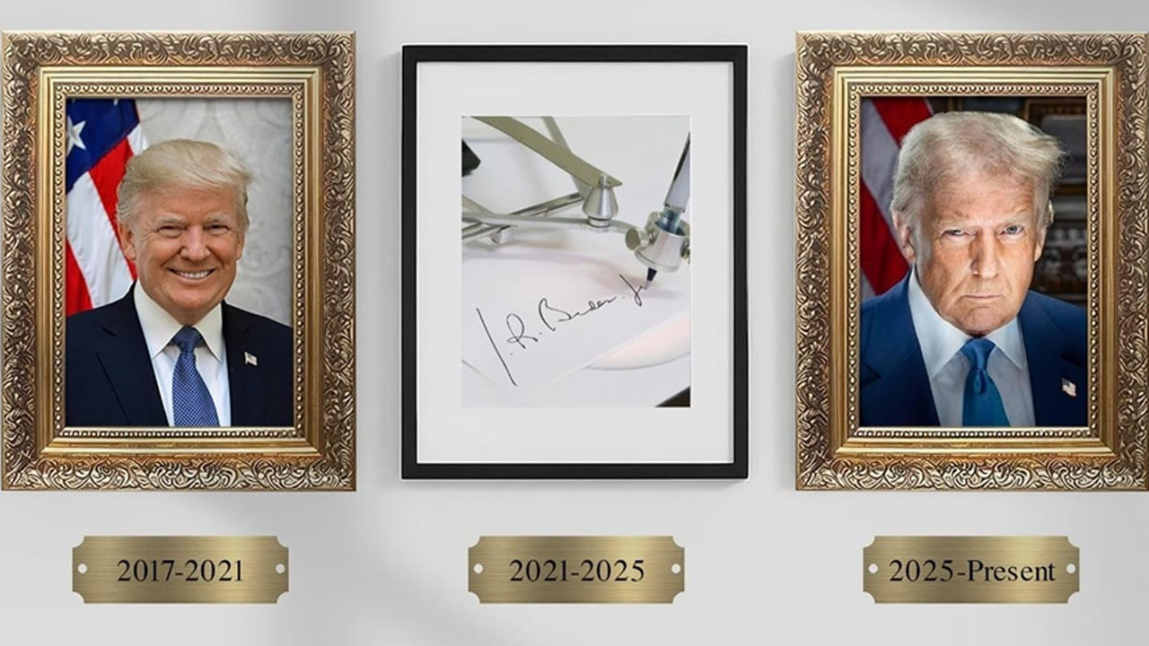 ABD Donald Trump, kendisinden önceki ABD Başkanı Joe Biden'a olan nefretini yeni bir şekilde gösterdi. Trump, Beyaz Saray'da ABD Başkanlarının yer aldığı bölüme, Biden'in fotoğrafı yerine "otomatik kalem" fotoğrafı koydu.