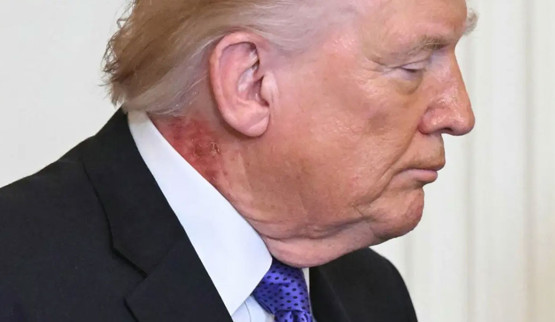 Törende çekilen çok sayıda fotoğrafta, Trump’ın boynunun sağ tarafında kırmızı bir leke görüldü.