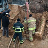 Bölgeye gelen ekipler, 1 saatlik çalışmayla, halatla eşeği kurtardı.