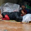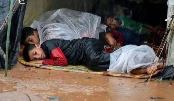 Yürek yakan fotoğraf karesi Yağmur altında uyuyan Gazzeli çocuklar...