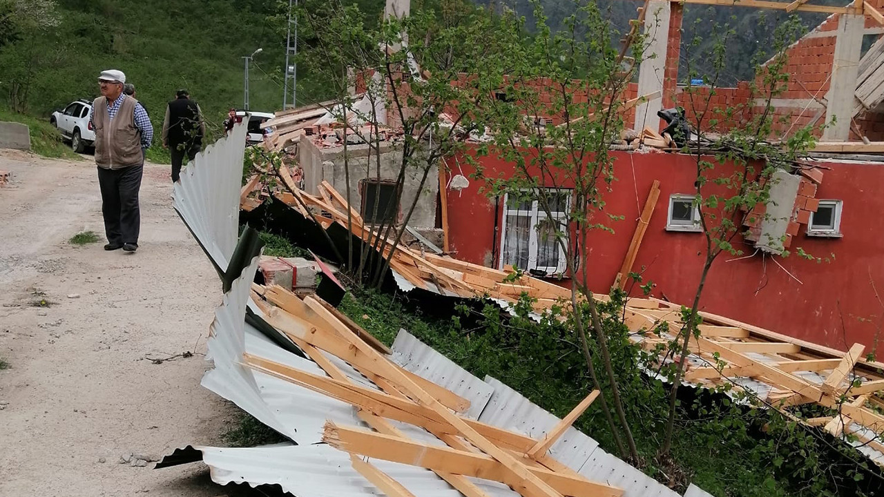 Gümüşhane’de kuvvetli rüzgar; evlerin çatısı uçtu