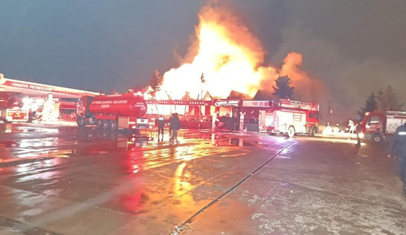 Afyonkarahisar'da bir akaryakıt istasyonunun içerisindeki restoranda yangın çıktı. İtfaiye ekiplerinin alevlere müdahalesi sürüyor.