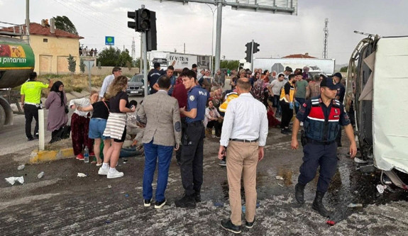 Afyonkarahisar'ın Emirdağ ilçesinde minibüs ile kamyonun çarpışması sonucu ilk belirlemelere göre 25 kişi yaralandı.
