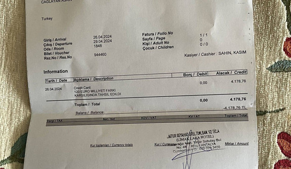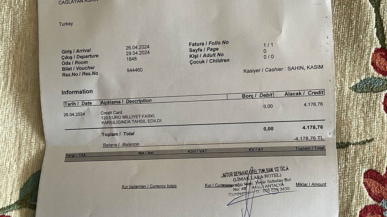 Abone Olİngiliz internet sitesi üzerinden yapılan rezervasyon sonrası konaklama için otele giden Türk vatandaşı, 120 euroluk bir fark ödemiş ve olay sosyal medyada geniş yer bulmuştu.