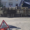 Beşiktaş'ta yükünü boşaltan hafriyat kamyonu devrildi