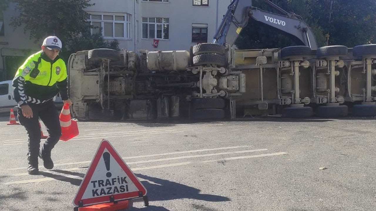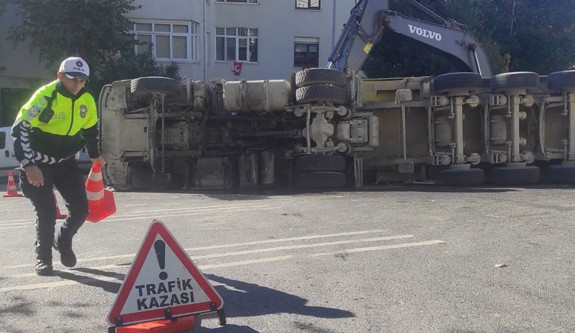 Kaza sırasında park halindeki bir araçta da hasar meydana geldi. Yol bir süre trafiğe kapatılırken, devrilen kamyonun kaldırılması için çalışmalar devam etti.