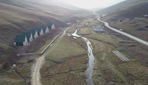 Gümüşhane'nin Taşköprü Yaylası'nda aynı renkte ve aynı mimari ile yan yana yapılan 6 yayla evini görenler otel sanıyor.