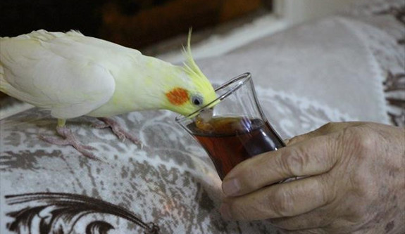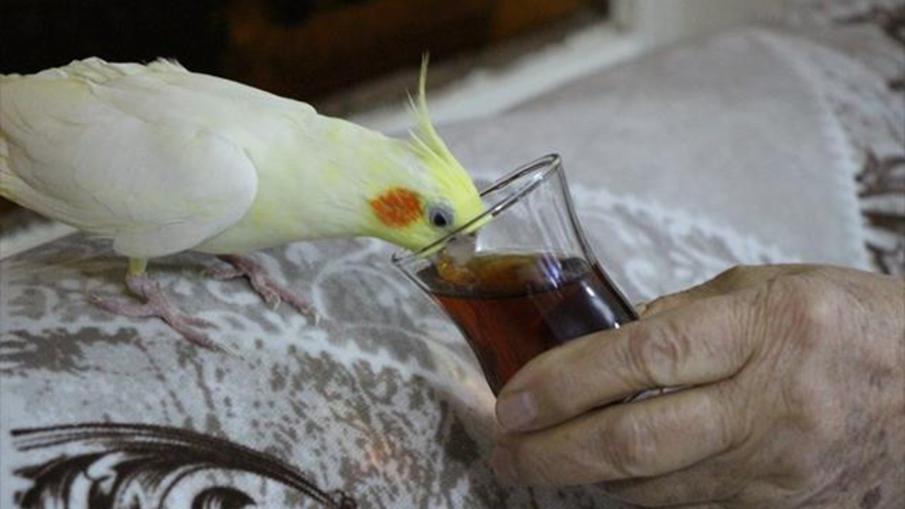 Demledikleri çayı içerken elindeki bardağa doğru hareketlenen kuşunun kafasını sokup birkaç yudum alması sonrası bunu alışkanlık haline getirdiğini belirten sahibi Cemile Kaytan, "Günde 1-2 bardak çay içiyor. Ilık halde içiriyorum" dedi.