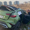 Sürücüsünün kimliği henüz öğrenilemeyen otomobil, Prof. Dr. Necmettin Erbakan Bulvarı'nda yol kenarındaki toprak ve taş yığınına çarptı.