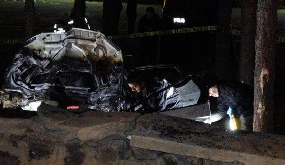 Aşırı hız nedeniyle sürücüsünün direksiyon hakimiyetini kaybettiği otomobil, önce refüje çarptı sonra da yolun karşısında bulunan Palandöken Devlet Hastanesi'nin bahçesine düştü. Çarpmanın şiddetiyle otomobil motor kısmından alev aldı.
