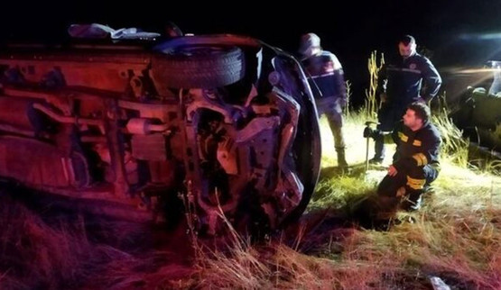 Kazada araçta sıkışarak yaralanan sürücü ile Şehriye Turgut ve Zelkif Karagöz, ekiplerin çalışmasıyla bulundukları yerden çıkarıldı.