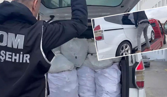 Çekiciye yüklenmiş ve arızalı izlenimi verilen hafif ticari araçta yapılan aramada, poşet ve çuvallara doldurulmuş halde parçalanmış silah malzemeleri ele geçirildi.