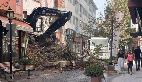 Eskişehir'de bina yıkımında molozlar trafiği aksattı