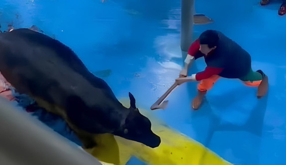 Et entegre tesisinde hayvana eziyet: Defalarca baltayla vurdular!