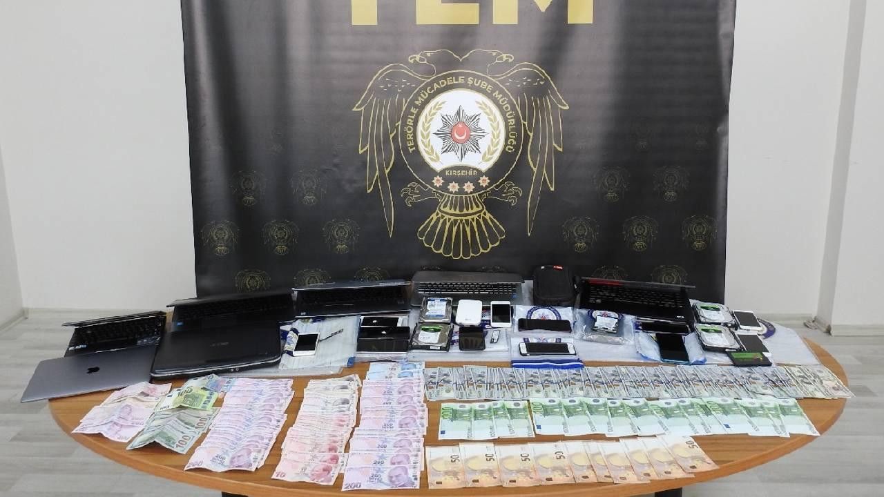 Adreslerde yapılan aramada, cezaevinde tutuklu bulunan veya mesleklerinden ihraç edilen örgüt üyelerine dağıtılmak üzere hazırlanan 9 bin 855 dolar, 2 bin 315 avro, 11 bin 865 lira ile çok sayıda dijital materyal ele geçirildi.
