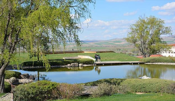 Kırşehir'in Kaman ilçesinde Japon hükümeti tarafından 25 yıl önce yaptırılan, her yıl binlerce turistin ziyaret ettiği ve evlenen çiftlerin doğal fotoğraf stüdyosu olarak kullandığı Japon Bahçesi, ilkbaharın gelmesiyle farklı bir güzelliğe büründü.