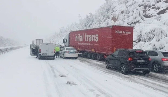 İstanbul karayolunun Korudağ mevkisinde kar yağışı etkili oldu.