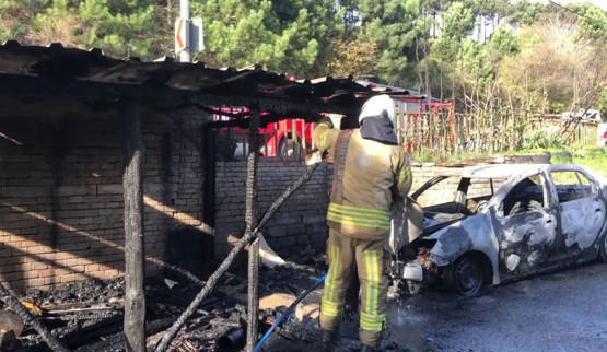 Beykoz'da bir garajda çıkan yangın, garaj yakınında bulunan otomobile de sıçradı. Garaj ve otomobil yanarak adeta kül olurken, o anlar ise korkuya neden oldu.