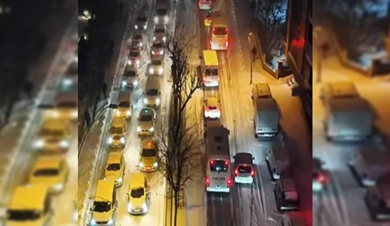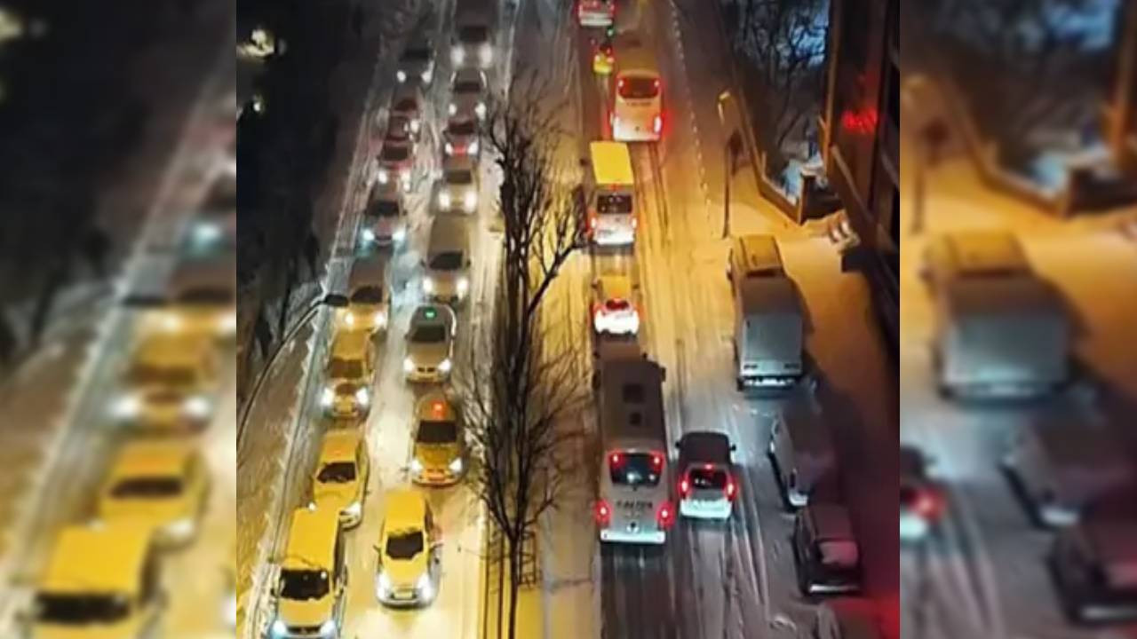 Kent genelinde, milyonlarca kişinin işe gitmek için yola çıkması ve kar yağışının etkisiyle ana arter, cadde ve yollarda araçlar güçlükle ilerliyor.
