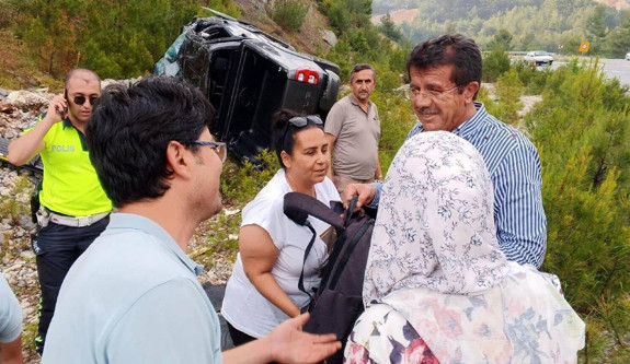 Muğla'nın Ula ilçesinde, devrilen pikapta bulunan Eski Ekonomi Bakanı Nihat Zeybekci ile yanında bulunan yakını İbrahim Ünlü yaralandı. Kazada hafif yaralanan Zeybekci ve Ünlü tedavilerinin ardından taburcu edildi.