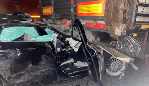 Kazanın şiddetiyle dorsenin altına giren lüks otomobil sürücüsü Bayram Y. ve araçta yolcu olarak bulunan Timurtaş A. (31) araç içerisinde sıkışarak yaralandı.