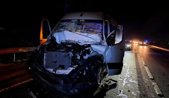 Antalya'da trafik ışıklarında bekleyen tıra tur minibüsünün arkadan çarpması sonucu minibüs sürücüsü ile Alman uyruklu 6 turist yaralandı.