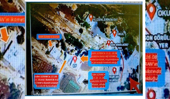 Görüntülerde olay günü kırmızı ve beyaz renkli araçların hareketliliği de dikkat çekiyor. İnceleme sırasında, bu iki aracın köy yollarında birbirlerini takip ettiği ve bir noktada ayrıldığı belirlendi. Beyaz araç çatal yoldan yukarı çıkarken, kırmızı aracın kuzeydoğu yönünde seyrettiği gözlemlendi.