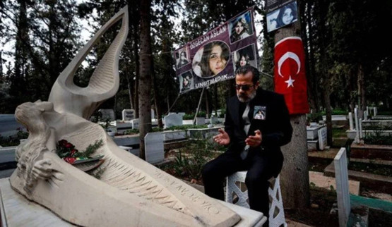 Anne Songül ve baba Mehmet Aslan, Tarsus ilçesinde 11 Şubat 2015'te 19 yaşındayken öldürülen kızlarının Mersin Şehir Mezarlığı'ndaki melek figürlü anıt mezarını ziyaret etti.