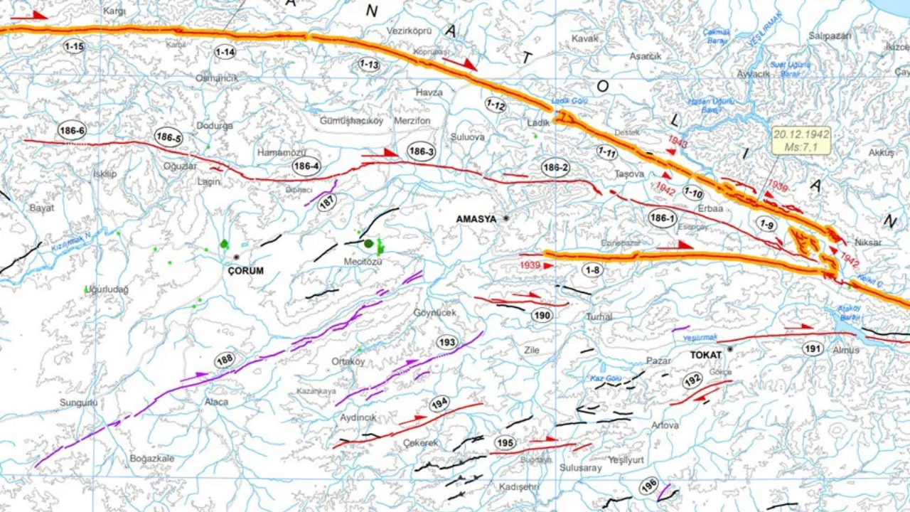 Prof. Dr. Okan Tüysüz, Kuzey Anadolu Fayı üzerinde bulunan Çorum, Amasya ve Merzifon'a dikkat çekti ve "Depreme daima hazır olmalı" uyarısında bulundu.