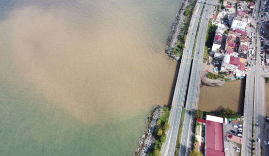 Dere ve ırmak ile denize taşınan atıklar da kıyı bölgelerde kirliliğe neden oldu. Denizin renginin değişmesi, drone ile görüntülendi.