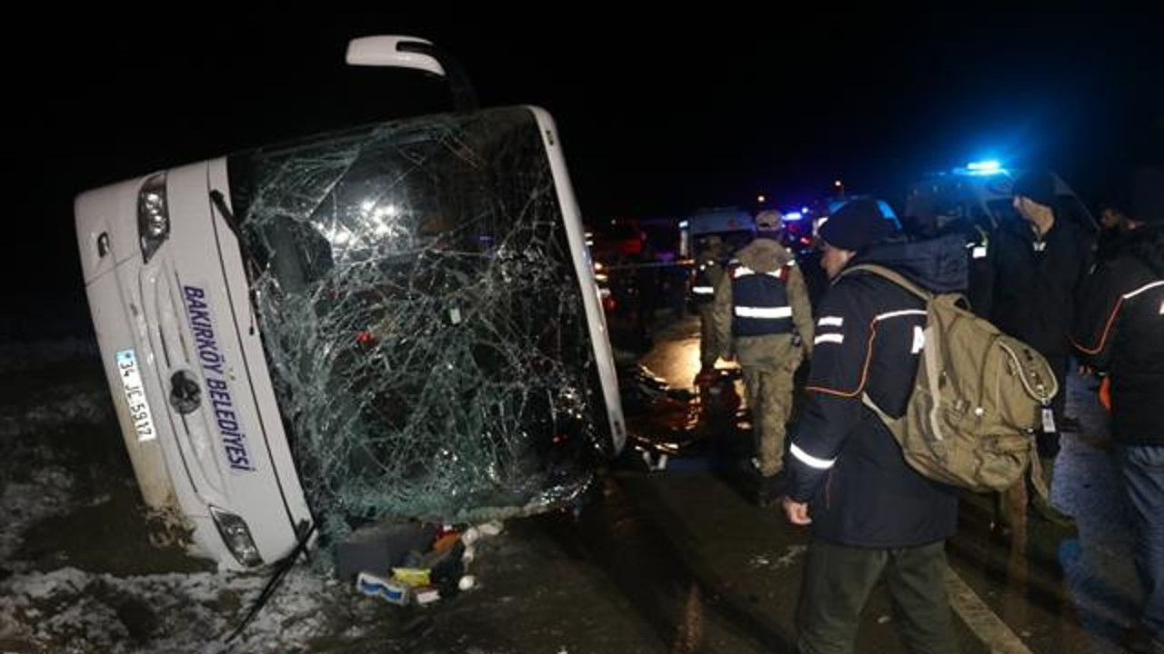 Yolcu otobüsü devrildi: 2 ölü, 35 yaralı