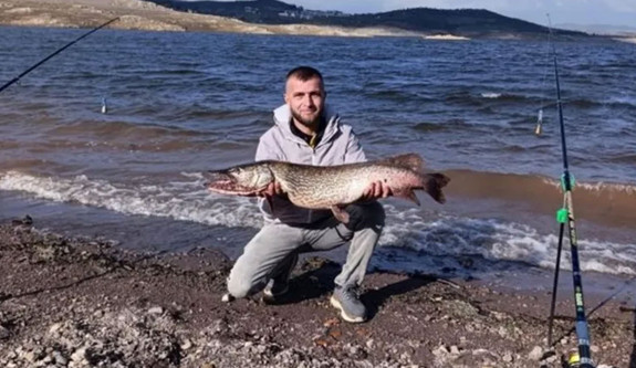 Barajda arkadaşıyla birlikte avlanan Hasan Gökçe’nin oltasına 8 kilo 750 gram ağırlığında turna balığı geldi. Uzun süren mücadelenin ardından sudan çıkarılan dev balık, baraj kenarında meraklı bakışlarla izlendi.